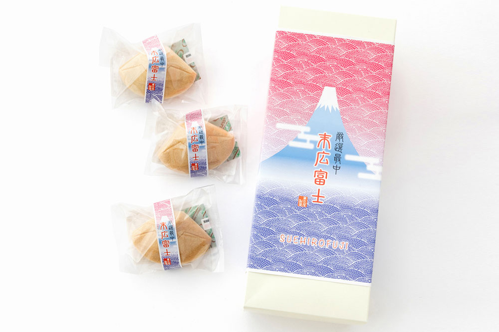 末広富士は、雄大な富士山の美しい稜線を模った最中です。北海道十勝産の大粒小豆を、ミネラルをたっぷり含んだ富士山の伏流水で丁寧に炊き上げました。上品な甘さの餡は滑らかな口当たりで、柔らかな求肥とさっくりとした食感の皮との絶妙なハーモニーをお楽しみいただけます。成功や繁栄の象徴である末広がりの形をした最中は、縁起が良く、お茶請けに最適。ご自宅用としてはもちろん、贈答品としても喜ばれる逸品です。